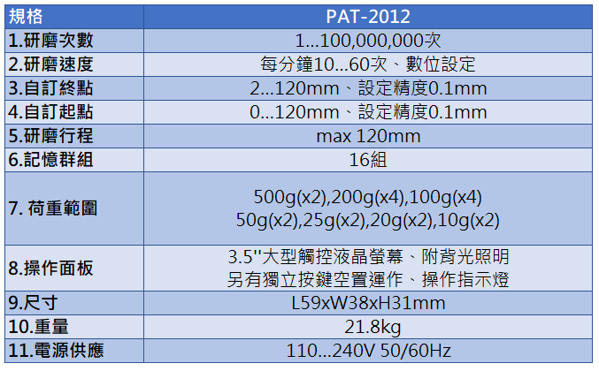| 1.研磨次數 | 1…100,000,000次 |