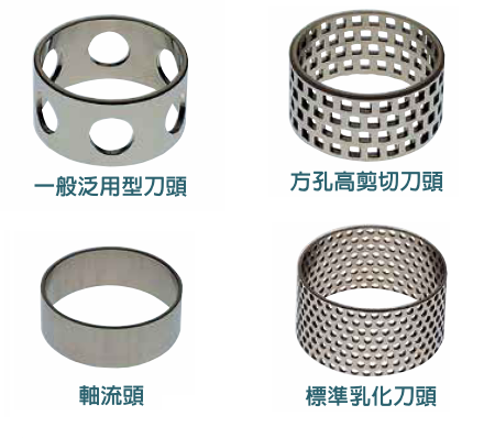 ● 含四種刀頭:一般泛用型刀頭 (GPDH)、標準乳化刀頭(EMSC)、方孔高剪切刀頭(SQHS)與軸流頭(AFLH)