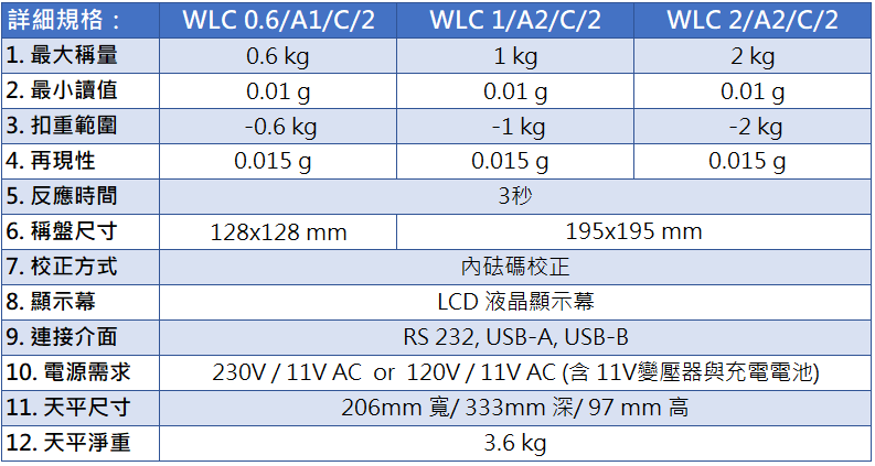 | 1. 最大稱量 | 0.6 kg | 1 kg | 2 kg |