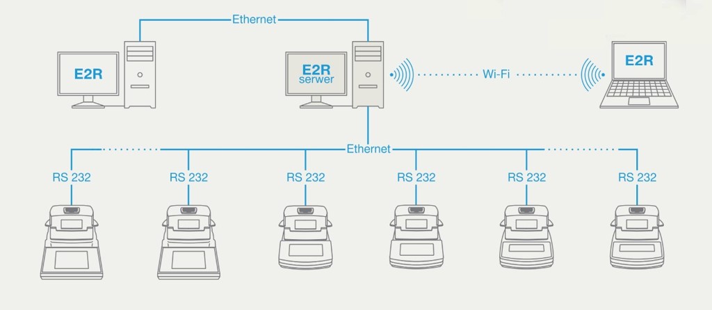 E2R 專業數據整合系統,此軟體可系統化管理秤重數據,將紀錄於多台RADWAG產品內的各項數據,透過網絡,進行數據整合收集,傳輸並儲存於中央電腦數據庫中。