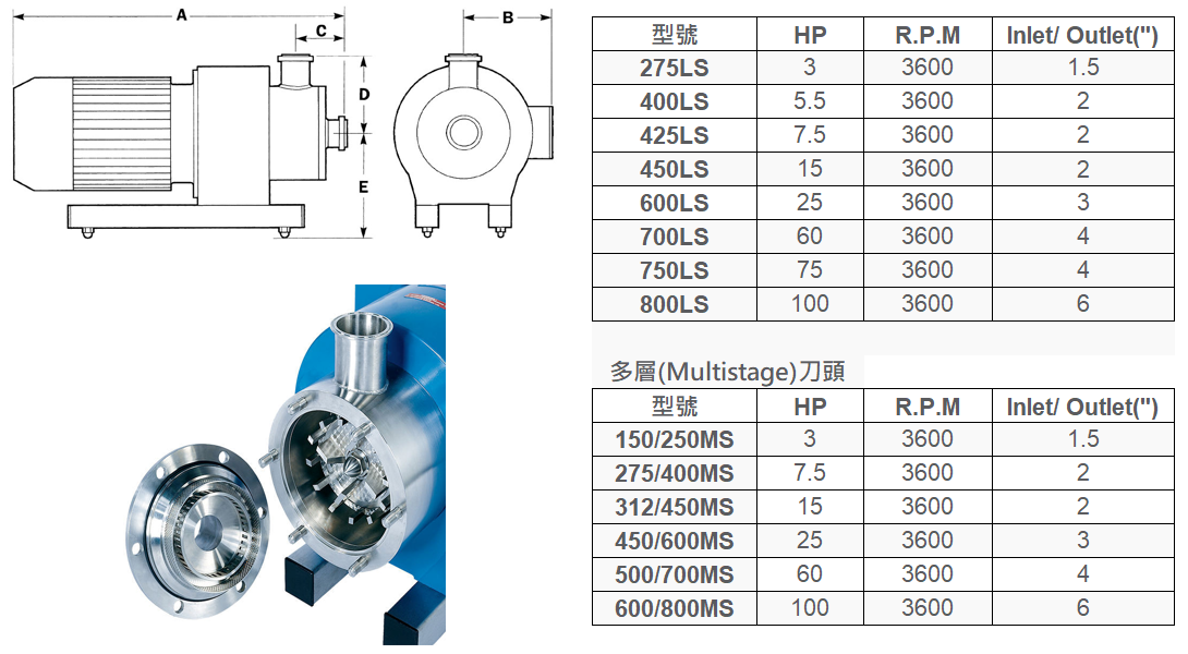 | 型號 | HP | R.P.M | Inlet/ Outlet(") | |