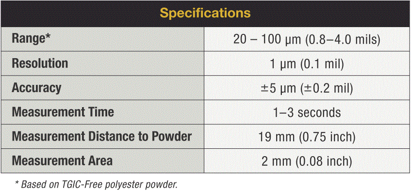 非接觸式塗層測厚儀測量未固化的粉末並預測固化的厚度