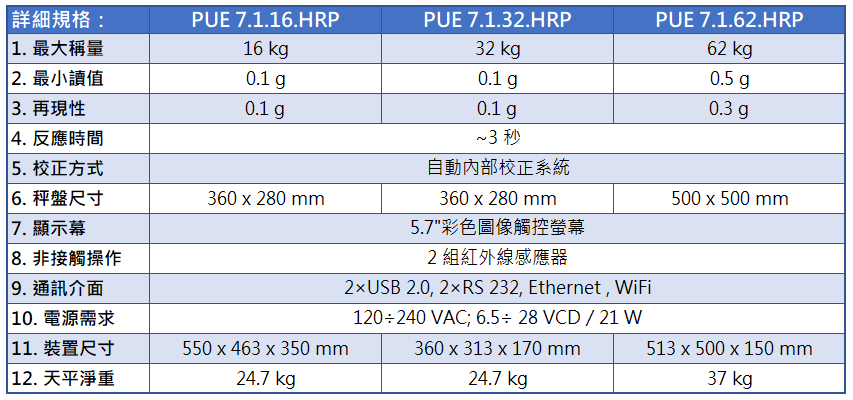 詳細規格 PUE 7.1.16.HRP PUE 7.1.32.HRP PUE 7.1.62.HRP