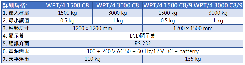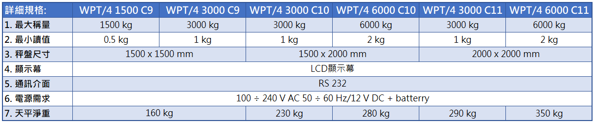 1. 最大稱量  1500 kg 3000 kg 3000 kg 6000 kg 3000 kg 6000 kg