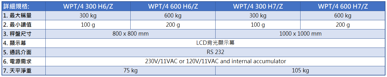 | 1. 最大稱量 | 300 kg | 600 kg | 300 kg | 600 kg |