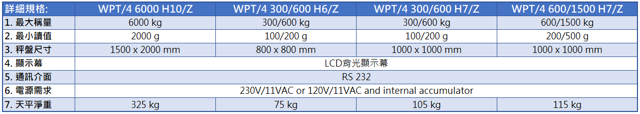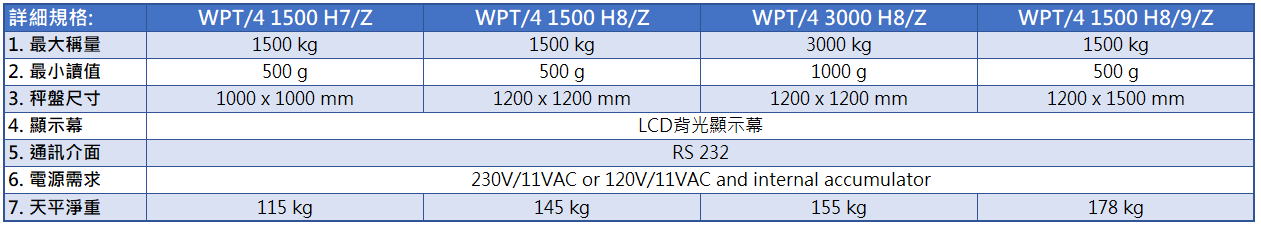 | 3. 秤盤尺寸 | 1000 x 1000 mm | 1200 x 1200 mm | 1200 x 1200 mm | 1200 x 1500 mm |