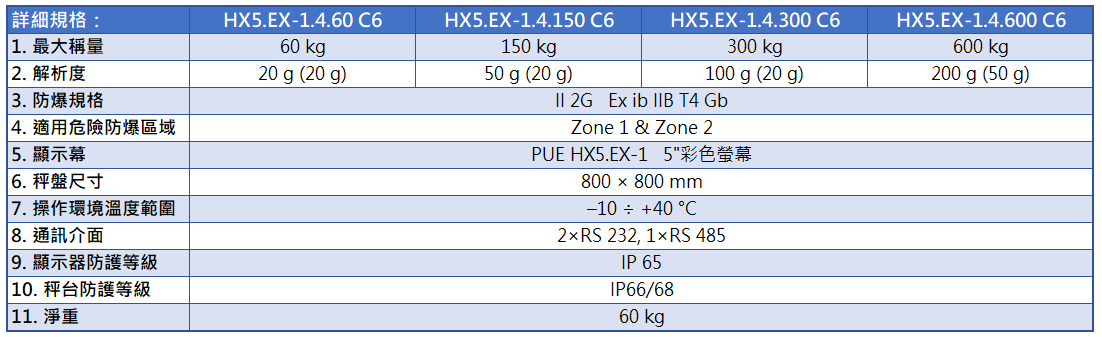 ● 防護等級: 指示器 IP66/68、秤台 IP65