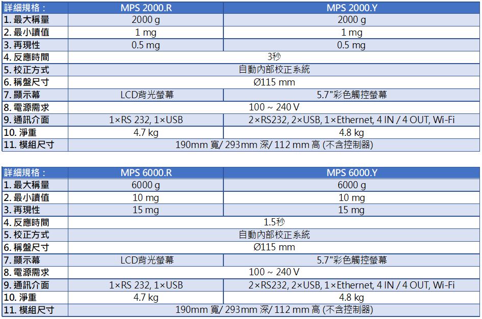 | 詳細規格 | MPS 6000.R | MPS 6000.Y |
