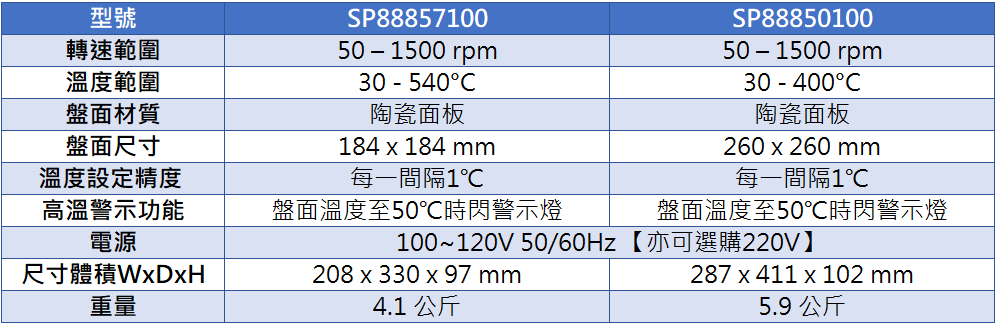 • 易於讀取的雙LED顯示屏,同時顯示攪拌轉速與加熱溫度