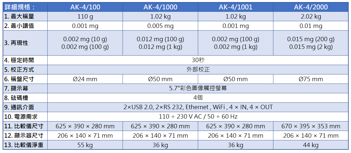 | 2. 最小讀值 | 0.001 mg | 0.005 mg | 0.001 mg | 0.01 mg |