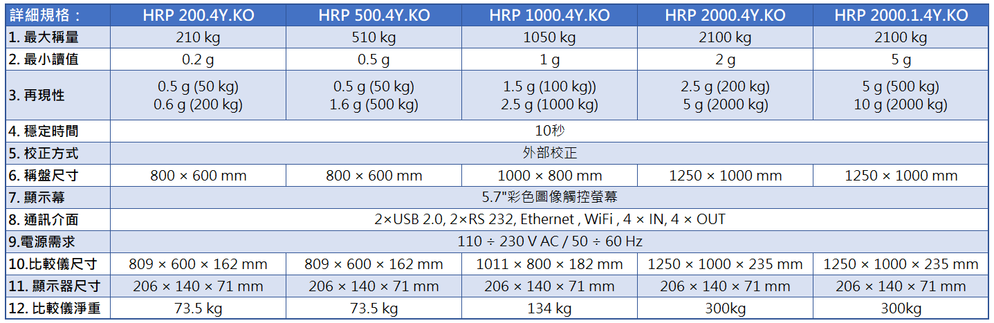 詳細規格 HRP 200.4Y.KO HRP 500.4Y.KO HRP 1000.4Y.KO HRP 2000.4Y.KO HRP 2000.1.4Y.KO
