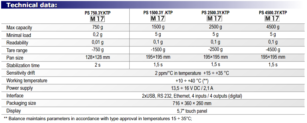 PS 3Y Packaged Goods Control Scales750 g ~ 2500 g