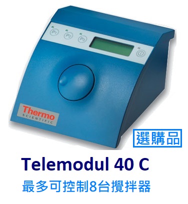 • 單個控制器最多可控制8個攪拌器 (需選購Telemodul 40 C及配電分享器)