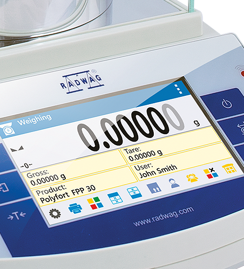 2. 觸控式7"彩色螢幕,可自定桌面顯示內容(如:日期時間、產品名稱、使用者、應用程式...等),並以動態顯示天平已使用之重量百分比