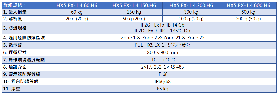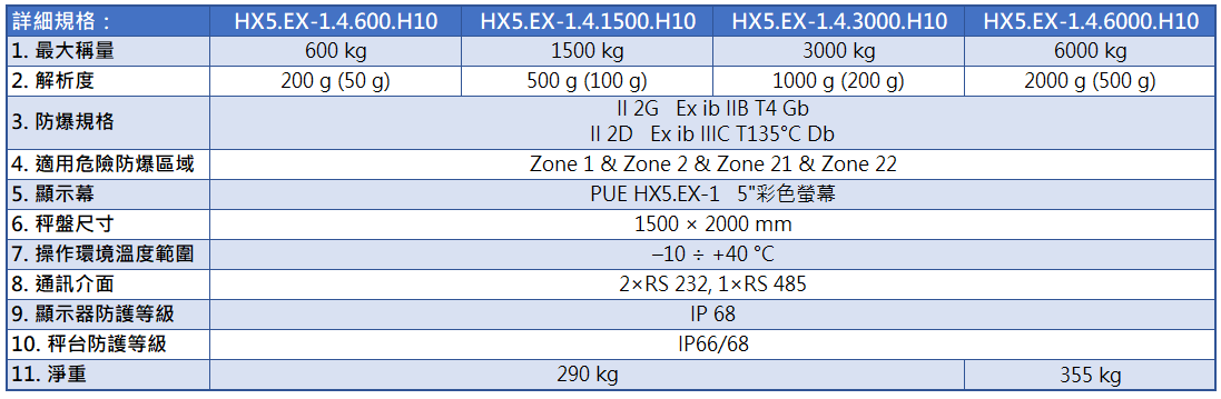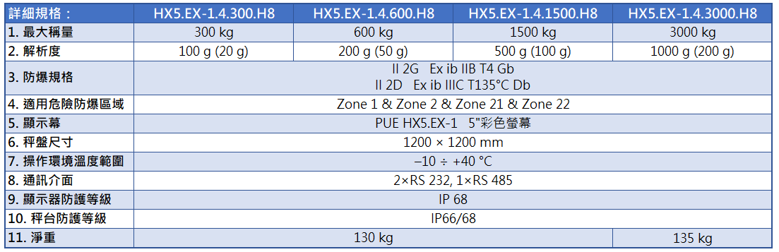 ● 防護等級: 指示器 IP66/68、秤台 IP68
