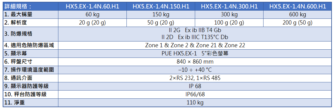 ● 防護等級: 指示器 IP66/68、秤台 IP68