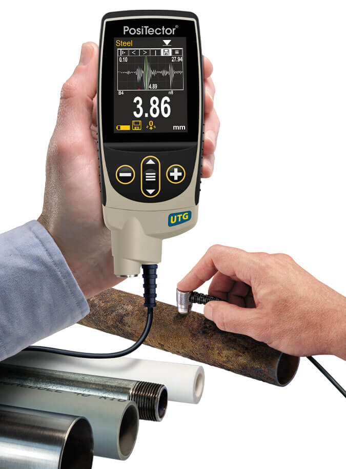 美國DeFelsko UTG測量各種材料壁厚,如鐵,塑料等,UTG M穿透塗層型,可測量已噴塗的金屬材料厚度測量時無需除去塗層,適用於檢測箱體、管道等腐蝕情況